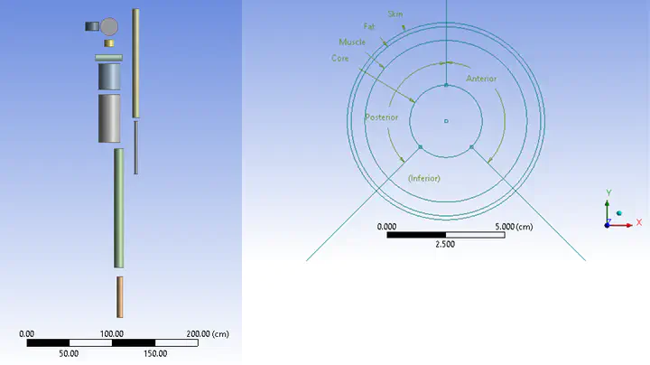 Full-body and arm cross-section schematicsThe modified Fiala model from Westin was implemented with conditions for circulatory shock and hypothermia. The purpose is to model Emergency Preservation and Resuscitation (EPR), a procedure for inducing hypothermia in patients. Cold tissue temperatures reduce metabolism exponentially, greatly extending the window of anaerobic metabolic activity before permanent deoxygenation damage. EPR in patients undergoing hypovolemic shock can preserve the patient until primary surgical care and blood transfusions are attainable, thereby increasing survival rates. The main applications of EPR are military in-situ stabilization for transit to clinical care and extending the survivability of patients requiring prolonged surgery before blood transfusion. The model explored in this paper seeks to model the tissue temperatures of the body while enduring circulatory shock and various options of cooling devices. Calibrating this model with already available data enables its use for getting preliminary results and design parameters for prototype cooling devices. The final objective of this research is to support the design of a cooling device that can induce sustained hypothermia in a field setting, while still being mobile enough for military and ambulance use.